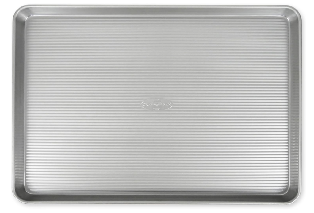 There’s nothing better than a baking sheet big enough to hold everything…and then some. That extra space feels downright luxurious. These USA Pans are incredibly sturdy and high-quality. They’ll last for years and never warp or pop in the oven.