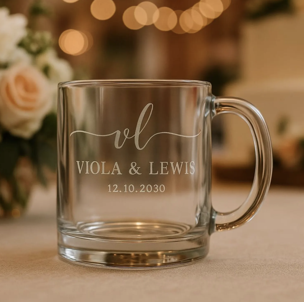 Start her morning with a little extra love, these personalized glass mugs feature her last name and make every sip feel special.