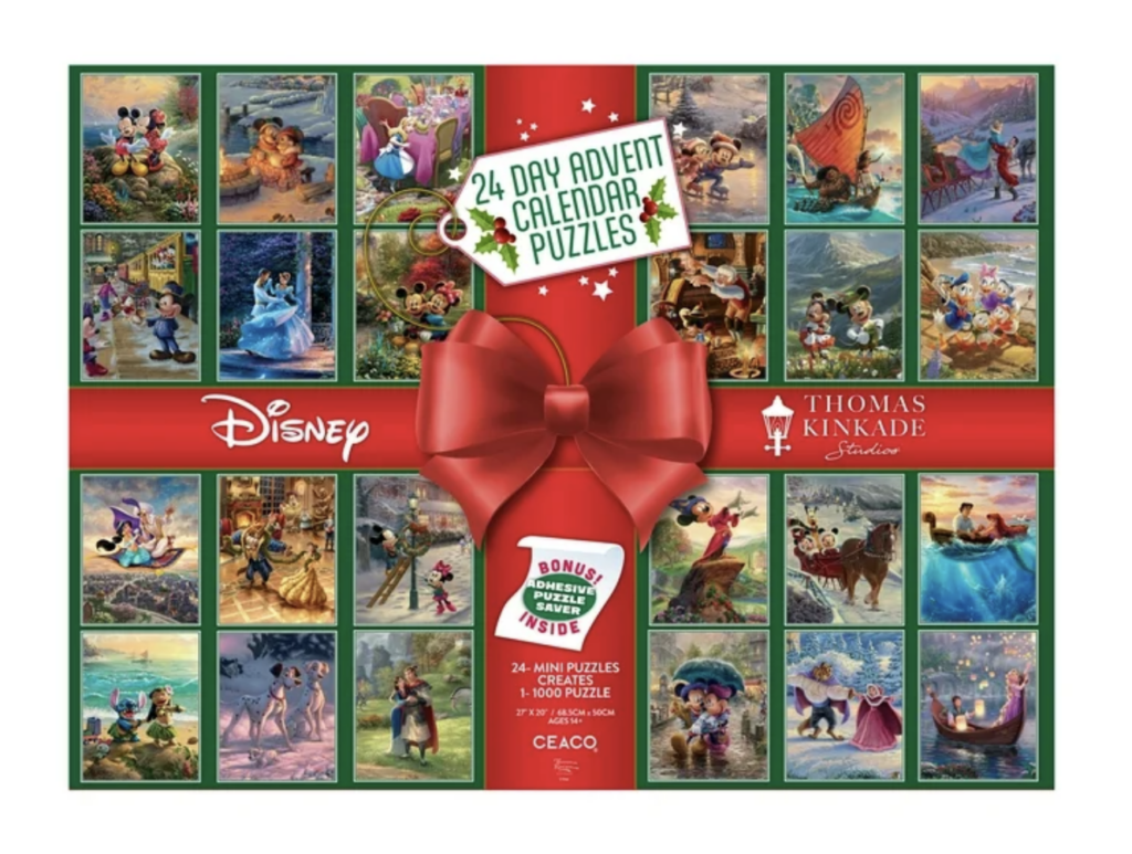 A little Disney magic for every day leading to Christmas! This advent calendar includes 24 mini puzzles that fit together into one big, beautiful Thomas Kinkade masterpiece – complete with a puzzle saver so you can keep it forever. This one is perfect for a Disney lover!