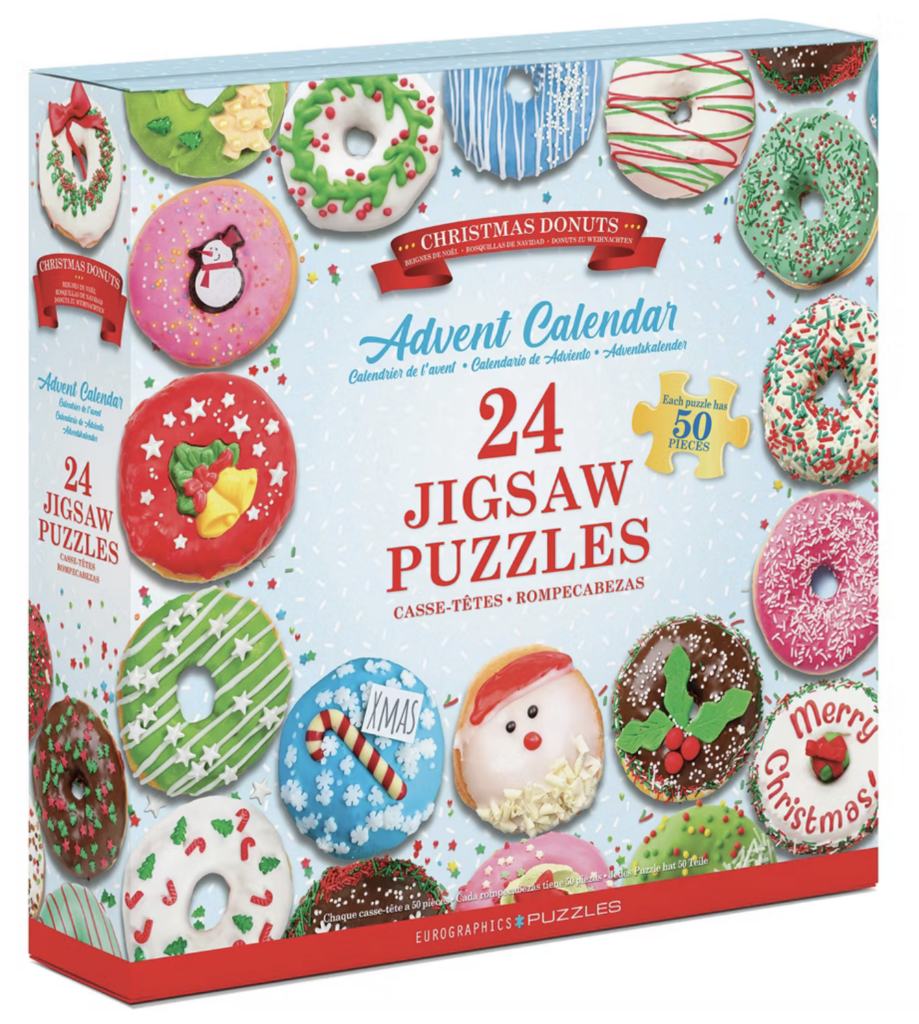 This advent calendar is as sweet as it gets. 24 individual mini puzzles, each 50-pieces with a festive donut design. I love that it comes in a sturdy book-style box with resealable bags, so it’s easy to save and enjoy again year after year. A cheerful countdown that’s just as fun for adults as it is for kids!
