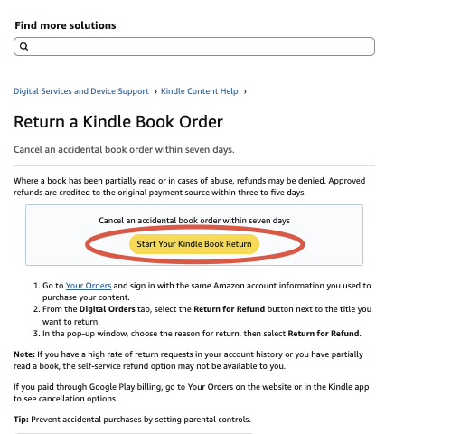 Second, you can’t read the entire Kindle book, decide you didn’t like it and then request a refund. Amazon doesn’t specify the amount you can read, but word on the street is anything past about 10% read will be denied a return. Also, if you have a high rate of return requests in your account history, you might no longer have the option to return. So don’t try to treat buying Kindle books like a lending library!