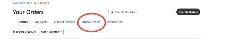 Next, click “Digital Orders” allowing you to see all of your content purchases.