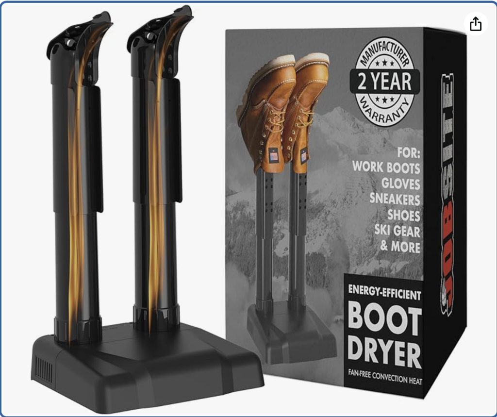These are perfect for wet shoes or boots (whether it’s ski season or a soggy walk to work)! They dry shoes quickly and quietly, keeping your footwear fresh and ready to go.
